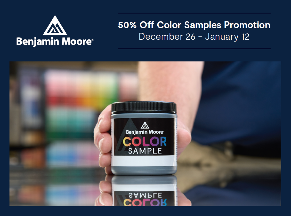 Click below to view the newest 2026 Color of the year AND the 2026 Color trends. Bring in the new year with a 50% color sample to pick a new color for your walls for the coming New Year.